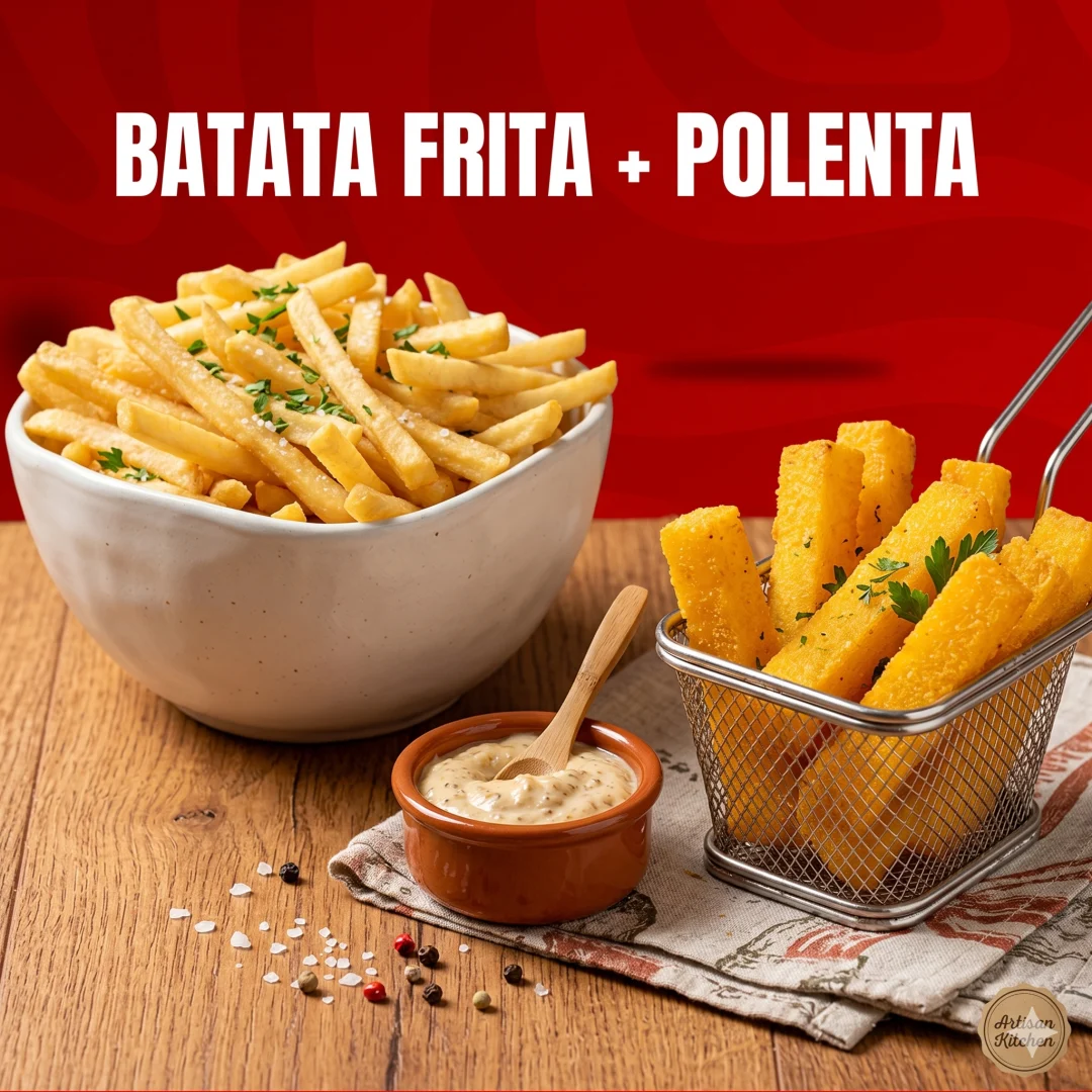 Comece pelos nossos filezinhos de frango bem temperados, empanados na medida certa pra garantir aquela crocância leve por fora e maciez deliciosa por dentro. Acompanhados de uma porção caprichada de batata frita sequinha ou polenta crocante, e claro, 1 molho especial grátis pra mergulhar e saborear até o último pedaço. Serve até 4 pessoas, perfeito pra dividir com a galera e transformar qualquer momento em festa.